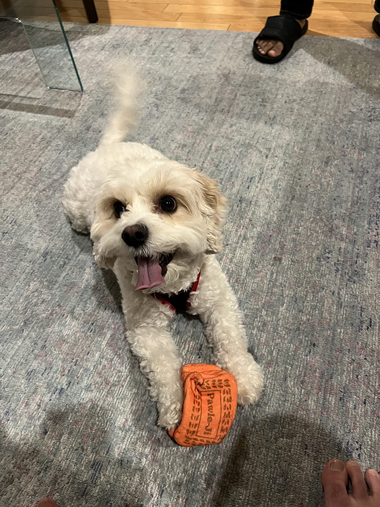 “Our dog Spike loves this toy and always picks it among the rest of his toys in the basket. He carries it around with him too sometimes. It’s very long-lasting, as today it’s been a month since he started playing with it and it’s intact! He loves the crinkling effect.” – Sirish